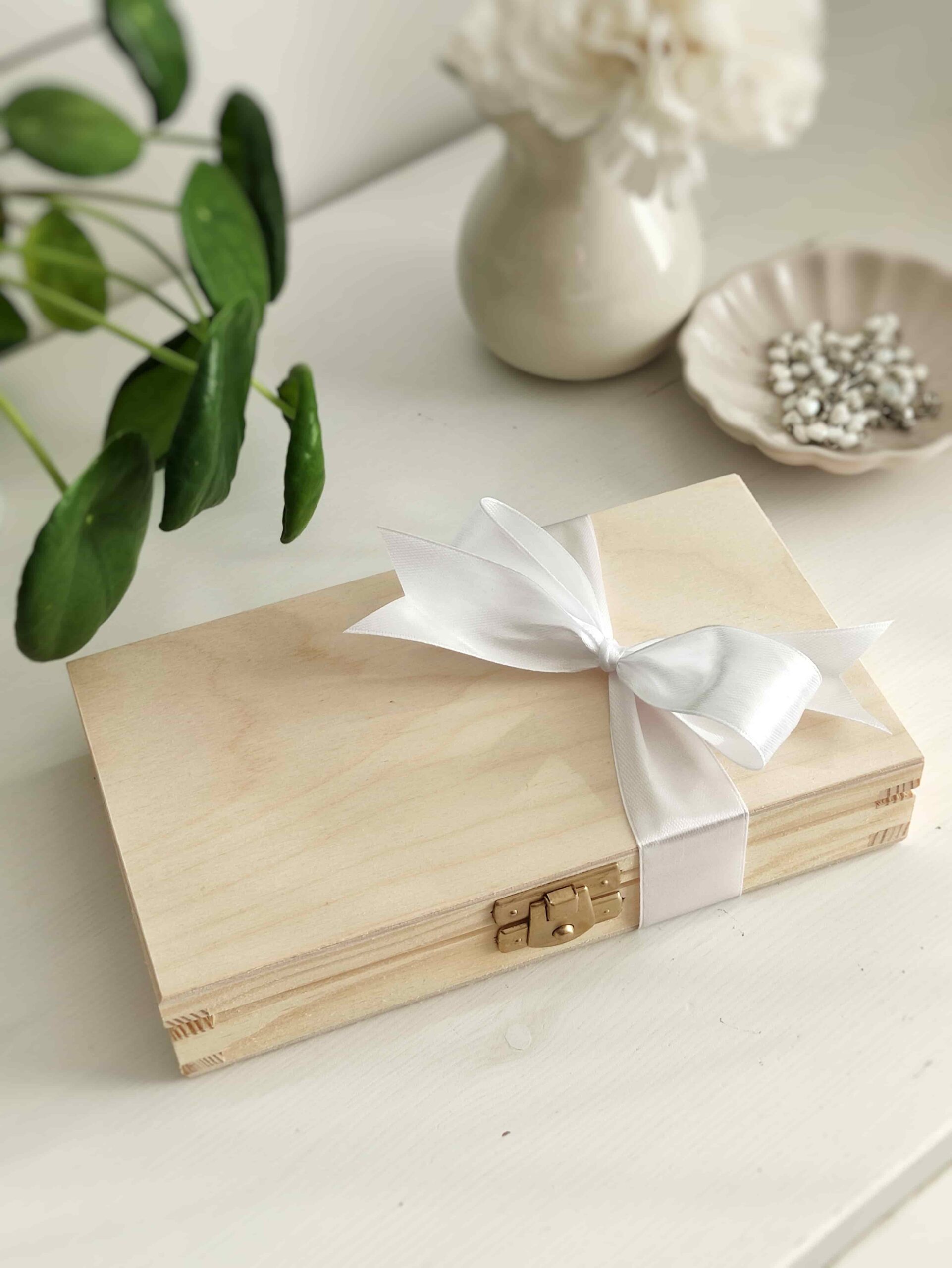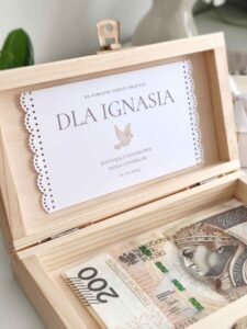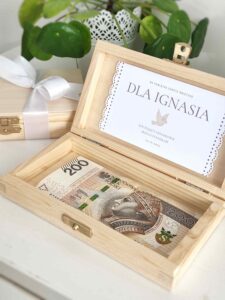 Pakując na prezent pieniądze do drewnianego pudełka, podarujesz nie tylko eleganckie opakowanie, ale także szkatułkę, która może stać się pudełkiem na wspomnienia, małe pamiątki.