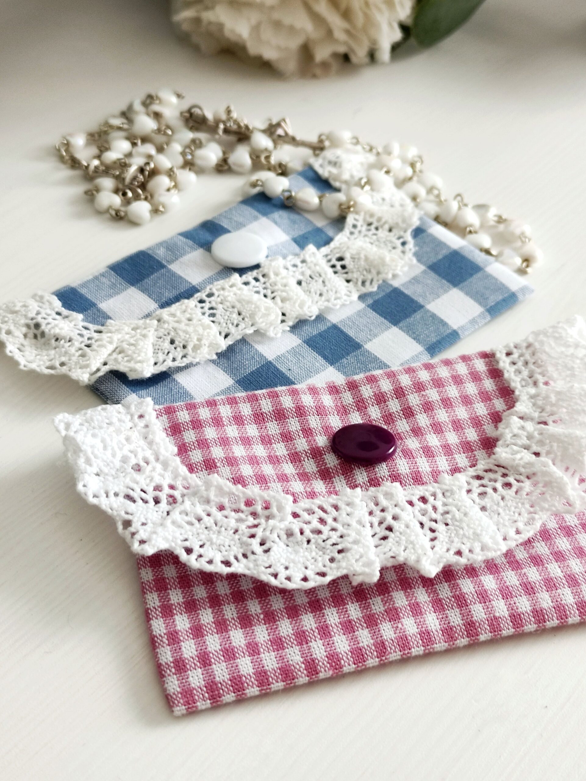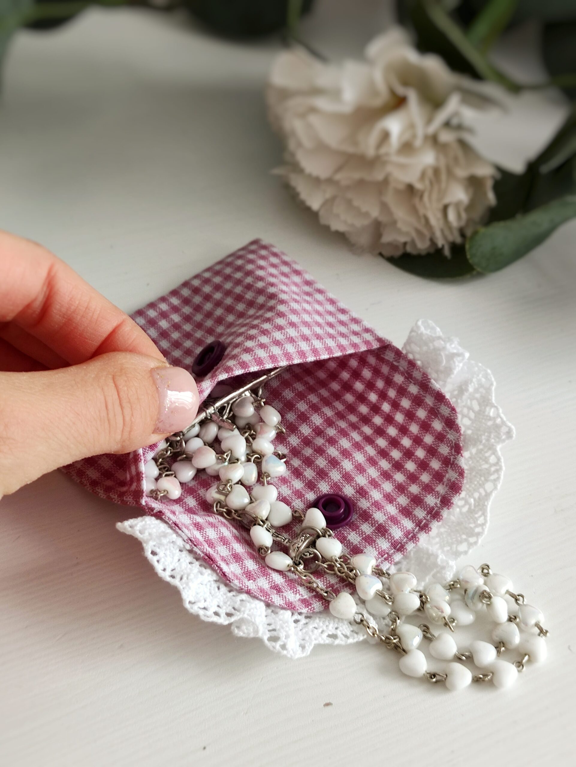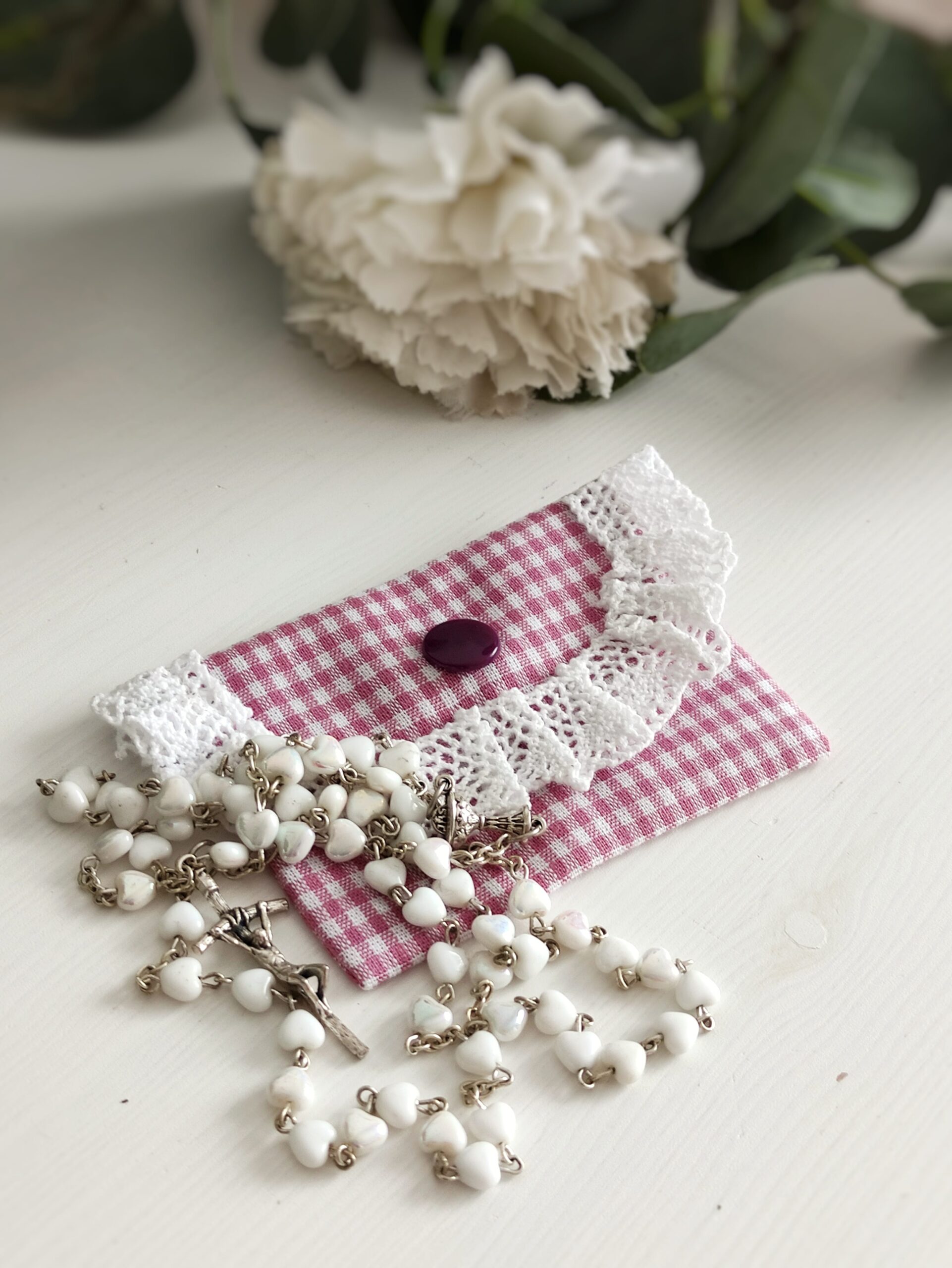 Ręcznie robione etui na różaniec – wspaniały pomysł na prezent dla przyjaciółki, mamy czy babci. Bardzo kobiecy i romantyczny model, wykończony uroczą koronką świetnie sprawdzi się w wielu sytuacjach.