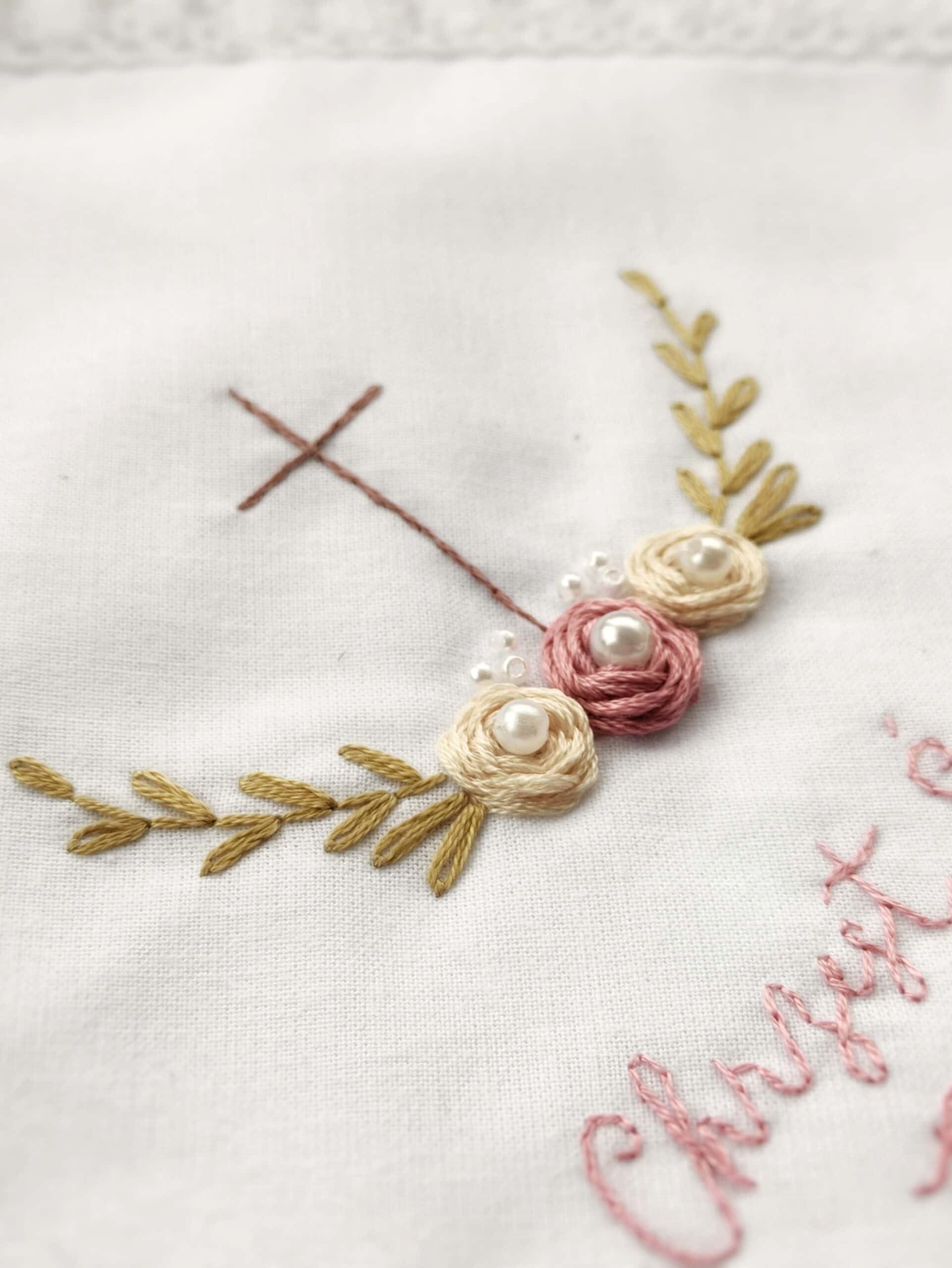 Moja ręcznie haftowana szatka do Chrztu Świętego z delikatnymi haftowanymi różami oraz krzyżem to elegancka i ponadczasowa pamiątka na ten wyjątkowy dzień. Haft symbolizuje katolicką wiarę, błogosławieństwo i dzieło zbawienia Jezusa, a subtelne detale dodają szatce niepowtarzalnego uroku. Wykonana z najwyższej jakości materiałów, będzie towarzyszyć Twojemu dziecku przez lata, przypominając o tej szczególnej chwili.